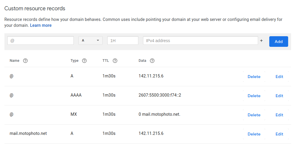 Your DNS manager may require you to enter a preference value (aka priority value). It can be any number between 0 and 65,356. A small number has higher priority than a big number. It’s recommended that you set the value to 0, so this mail server will have the highest priority for receiving emails. After creating MX record, you also need to create an A record for mail.your-domain.com , so that it can be resolved to an IP address. If your server uses IPv6 address, be sure to add AAAA record.