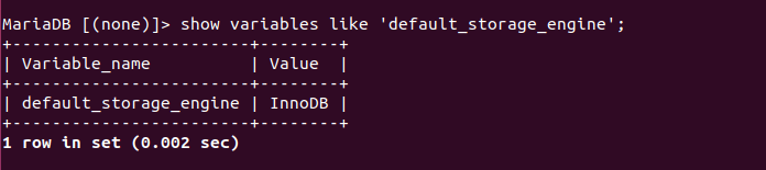 MariaDB [(none)]> show variables like 'default_storage_engine';