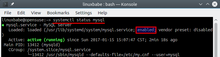 We can see from the screenshot that MariaDB is running and auto start enabled.