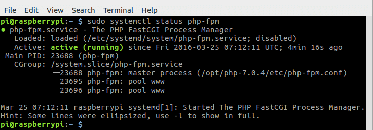 Congrats! You have successfully compiled PHP7 and installed it on Raspbian Jessie. Also we created a php-fpm.service file and can easily manage php-fpm with Systemd.
