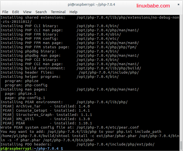When it’s done, let’s compile PHP7 with make command. use -j4 option if your Raspberry Pi has a quadcore processor.