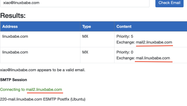 I noticed that you have two mail exchange: (mail2.linuxbabe.com, mail.linuxbabe.com).