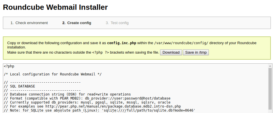 Now you should be able to see the Roundcube web-based install wizard at http://mail.your-domain.com/installer.