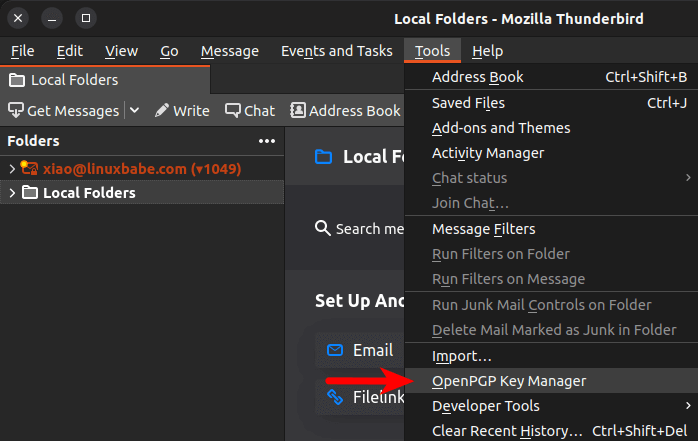 - If you follow my previous GPG tutorial, then you should have a key pair managed by GnuPG. You need to import it to Thunderbird.