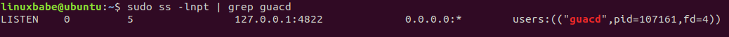 sudo ss -lnpt | grep guacd