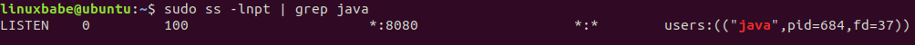 sudo ss -lnpt | grep java