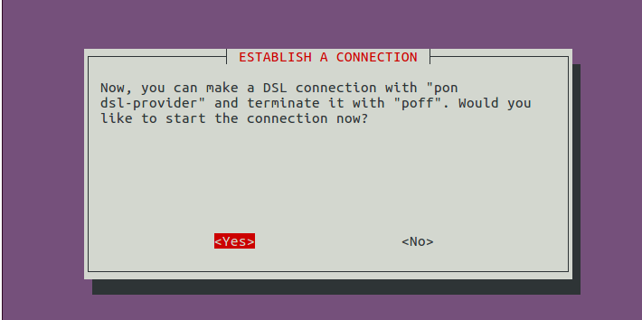 Then insert DSL cable to the network port of your computer and enter the following command in terminal to set up PPPoE connection.