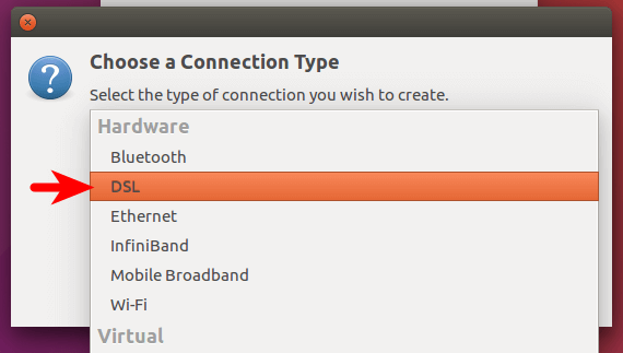 Finally, select DSL connection from the drop-down menu to establish the connection.
