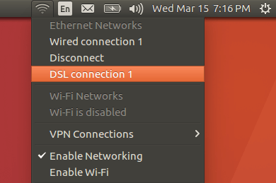 Insert DSL cable to the network port of your Ubuntu computer. Then click the network manager icon and select Edit Connections in the drop-down menu.