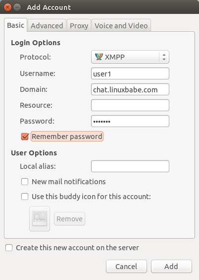 Then select XMPP from the list of protocols and enter your username, domain and password.