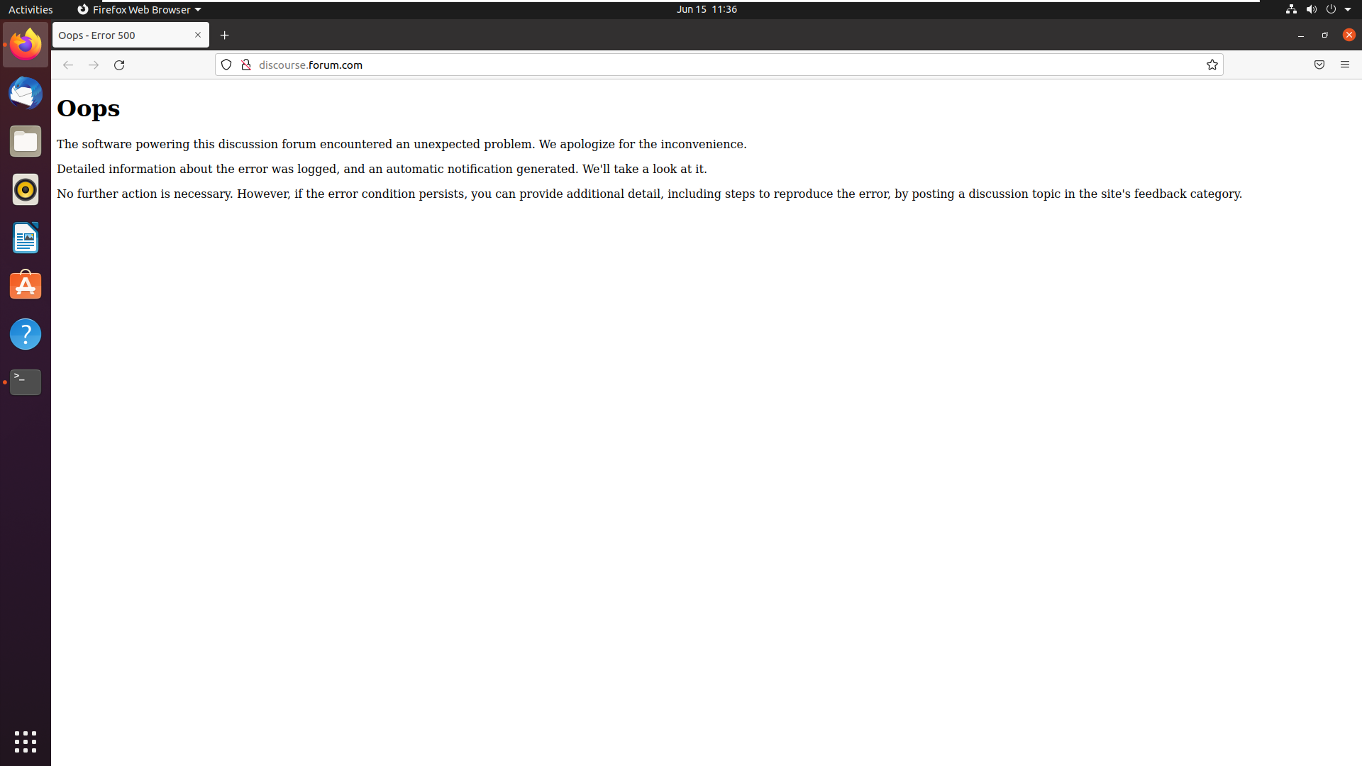 The software powering this discussion forum encountered an unexpected problem. We apologize for the inconvenience.