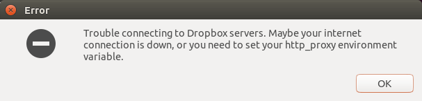 If you see the following error message when updating Dropbox, but you are sure that your Internet connection is working. Then the Dropbox command is probably trying to use IPv6 protocol, but your computer can’t use IPv6 protocol to connect to the Internet, so you should disable IPv6 on Ubuntu.