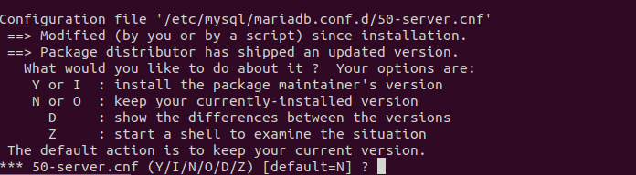 If you are upgrading an existing MariaDB server to the latest version, you might see the following message. I recommend choosing N to keep the current version and examine what needs to change later.