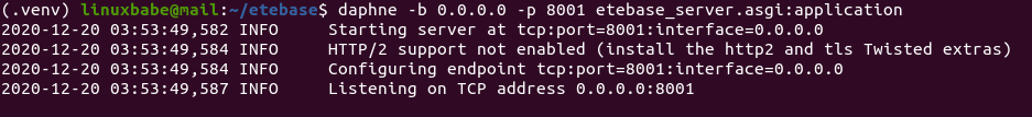 daphne -b 0.0.0.0 -p 8001 etebase_server.asgi:application