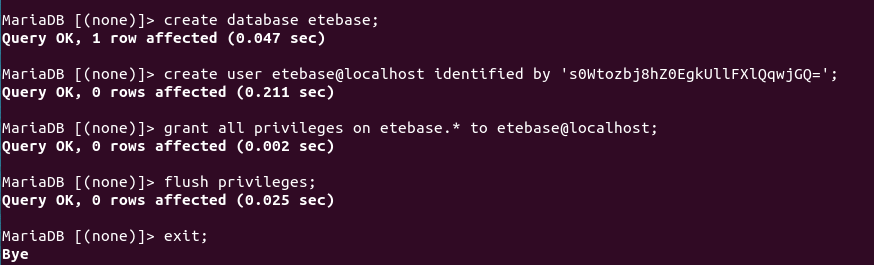 Step 2: Create a Database and User for EteSync in MariaDB Database Server