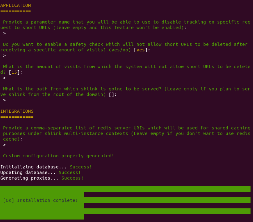 sudo -u www-data php8.0 /var/www/shlink/bin/install