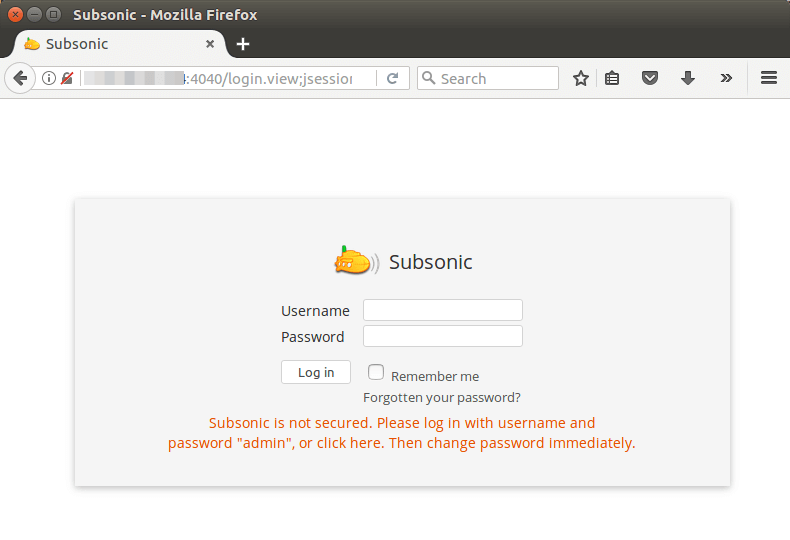 If you installed Subsonic on an Internet-facing Ubuntu server, then type in the following address in browser to visit Subsonic web interface.