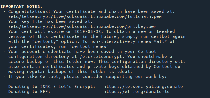subsonic certbot https certificate