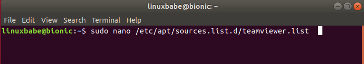 Then enter the following command in terminal to create a source list file for TeamViewer. Nano is a command line text editor, which allows you to edit text files in the terminal.