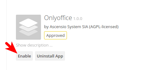 Then go to ownCloud Apps page, click Not Enabled tab and enable the OnlyOffice app.