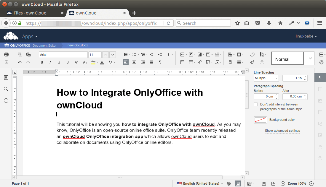 This tutorial will be showing you how to integrate OnlyOffice with ownCloud. As you may know, OnlyOffice is an open-source online office suite. OnlyOffice team recently released an ownCloud OnlyOffice integration app which allows ownCloud users to edit and collaborate on documents using OnlyOffice online editors.