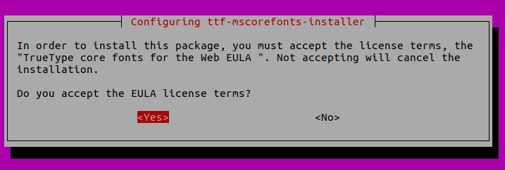 You also need to accept the Microsoft license terms in order to install TrueType core fonts from Microsoft.