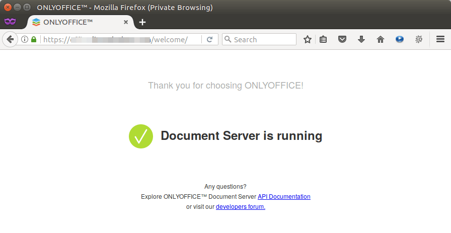 Once the installation is finished, enter your server’s public IP address in a web browser, and you should see “ONLYOFFICE Docs Community Edition installed”