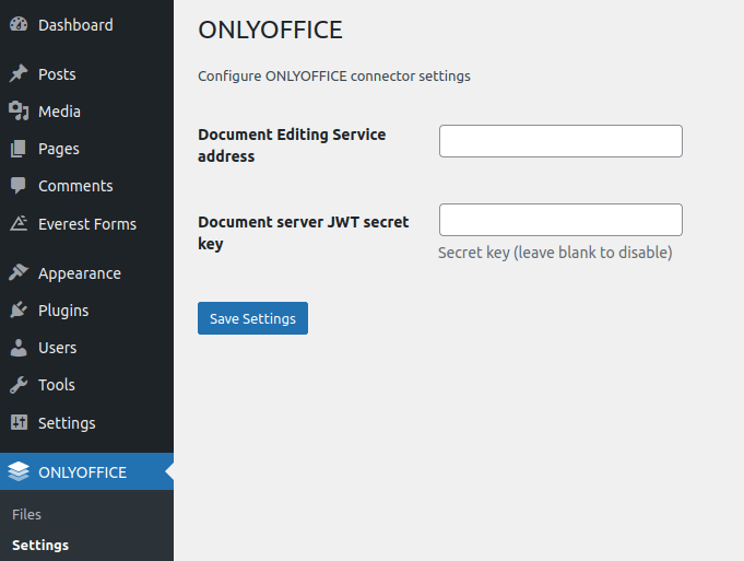 Then read the following instructions to integrate OnlyOffice and WordPress. The OnlyOffice document server and WordPress server can be installed on two different hosts.