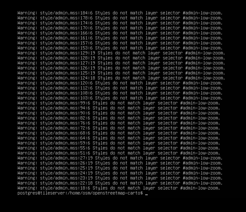 Warning: style/admin.mss:18:6 Styles do not match layer selector #admin-low-zoom.