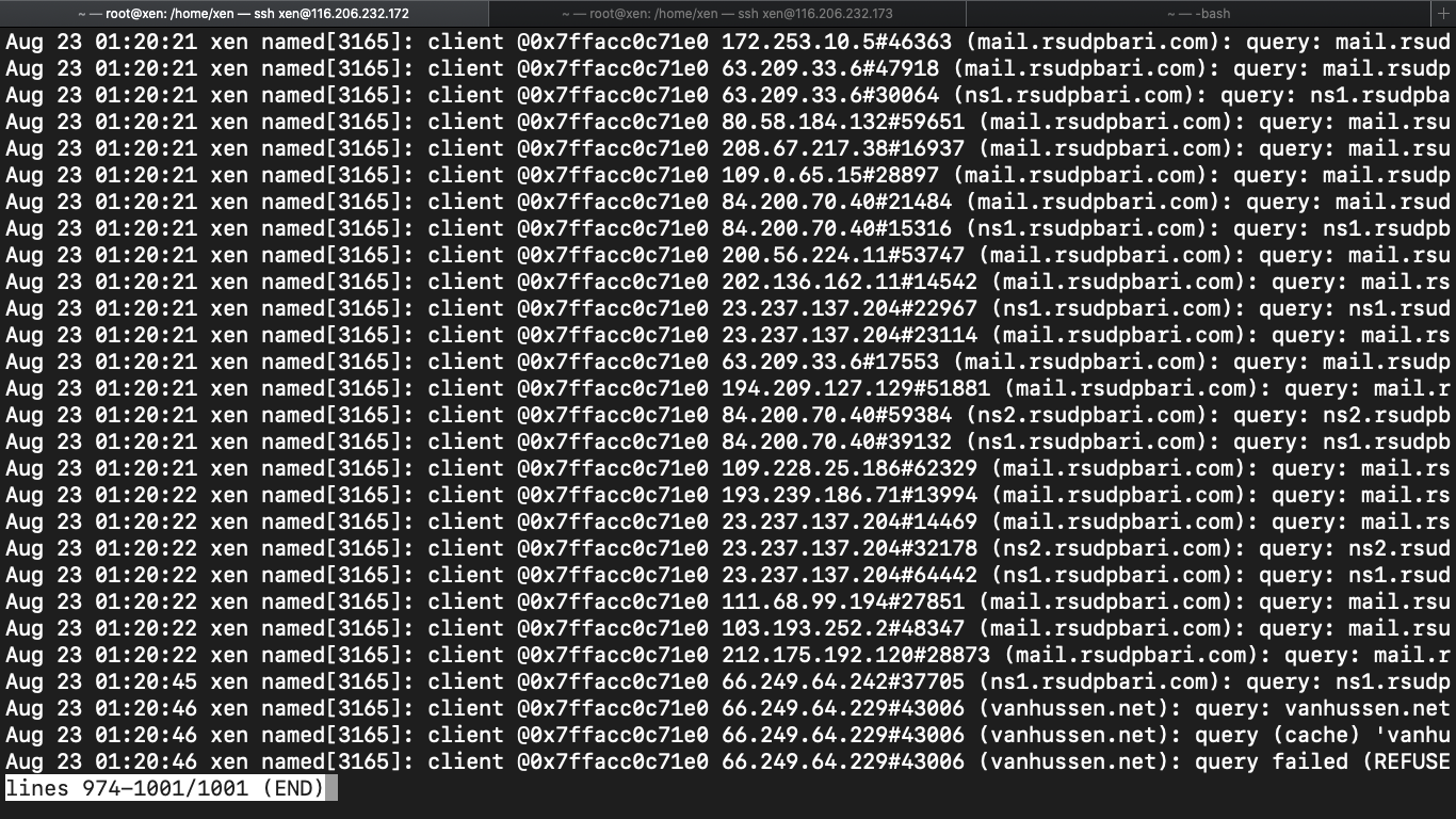 Log into the two servers via SSH and run the following commands to install BIND 9 on Ubuntu 22.04/20.04 from the default repository. BIND 9 is the current version and BIND 10 is a dead project.