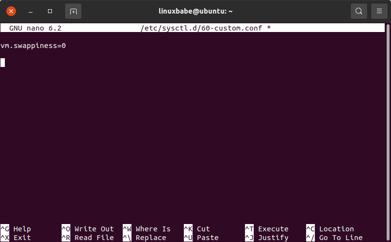 It’s recommended to set a low value for swappiness so that the Linux kernel will use as much physical RAM as possible. To change this value, create a /etc/sysctl.d/60-custom.conf file with the Nano text editor.