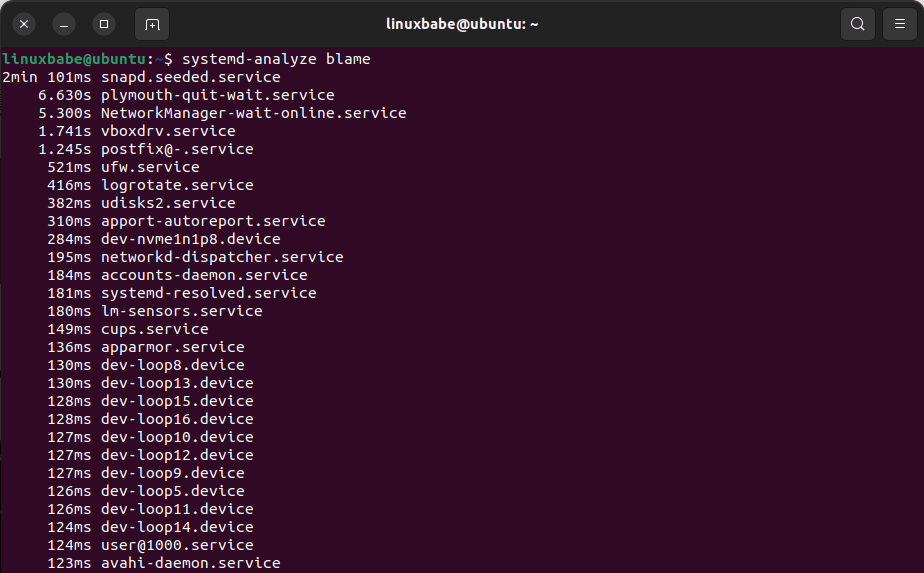 Another way to speed up the Ubuntu boot process is to disable some systemd services. You can view additional startup applications by executing the following command in the terminal.