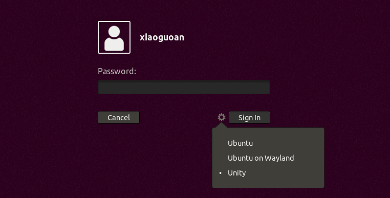 You should now see the Ubuntu 18.04 GNOME login screen. GNOME is the default desktop environment, but you can choose Unity desktop on the login screen.