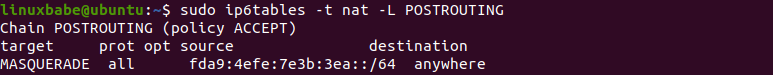 Now if you list the rules in the POSTROUTING chain of the NAT table by using the following command: