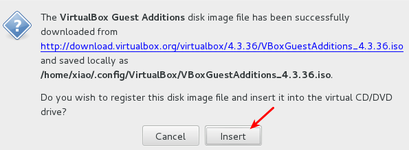 The VBoxGuestAdditions_<version_number>.iso file will be downloaded into /home/<username>/.config/Virtualbox directory