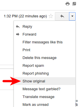 Instead of setting a password, the hacker open the original email message or the source email message. In Gmail, open the email sent by WordPress and on the upper-right corner click the drop-down arrow and select show original.